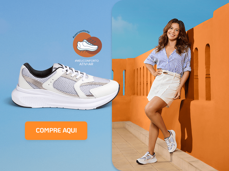 Na combinação de camisa e bermuda, o tênis quebra a formalidade e deixa o look mais casual. A opção na cor branca pode ser ideal para quem gosta de uma energia mais leve e clean, com o clássico listrado para dar um charme. Esse tênis conta com a tecnologia Ativ+ar, que privilegia a respiração dos pés ao longo do dia e aumenta a sensação de conforto.