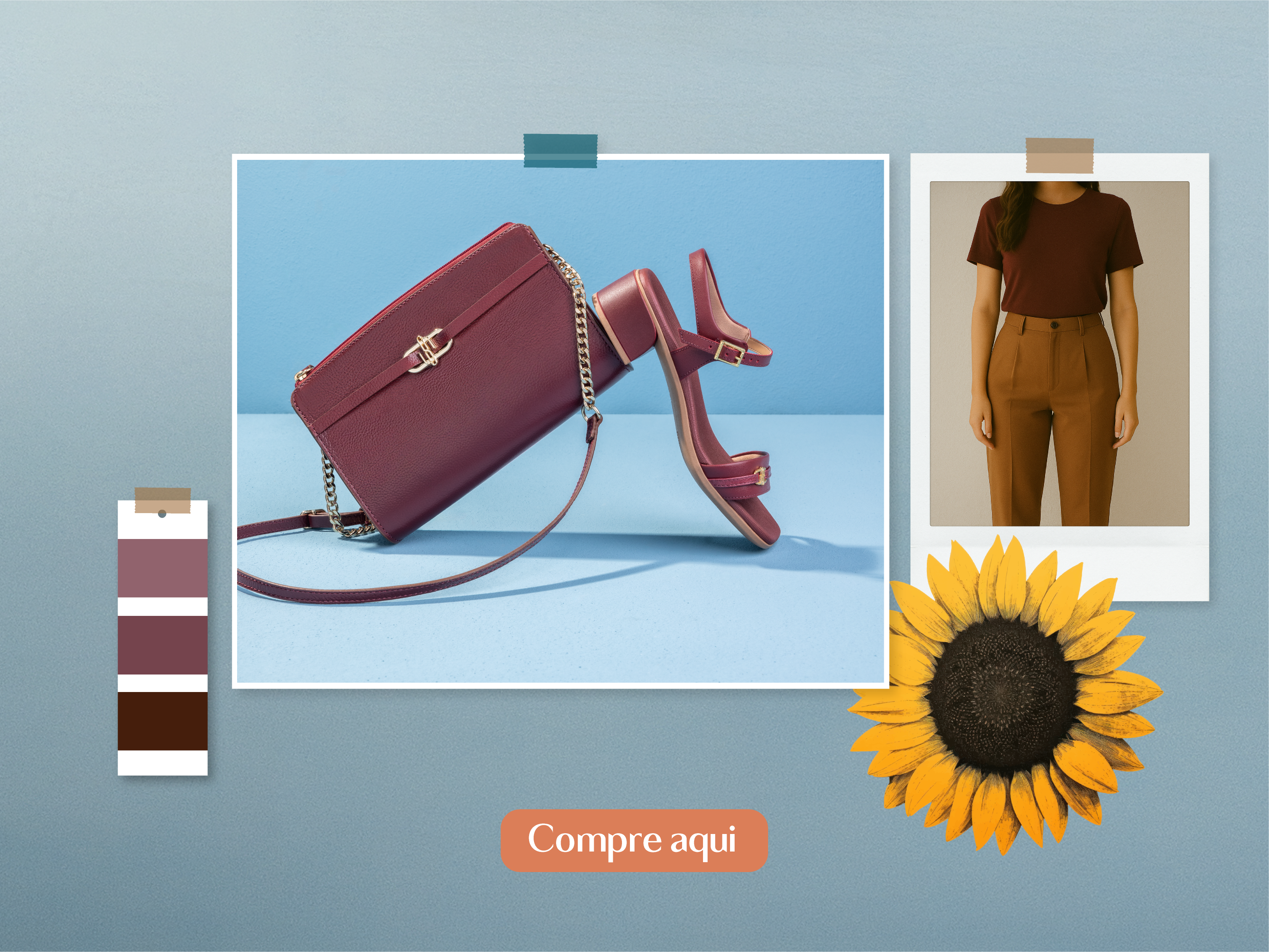 Símbolo de sucesso e superação, o Girassol é a escolha perfeita para um look poderoso e cheio de confiança. A sandália e a bolsa em um tom vermelho mais fechado dão o toque de elegância para um look despojado e cheio de estilo para qualquer ocasião.