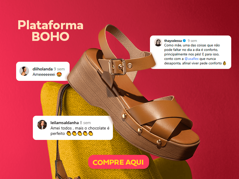 A gente voltou direto aos anos 2000 e trouxe as plataformas repaginadas, com acabamento amadeirado que é a cara do verão e faz referência ao estilo boho. O modelo conta com a estabilidade do salto alto que envolve todo o solado, aliado à tira da sandália, garantindo leveza para te acompanhar em todas as tarefas do dia. E pode confiar: já foi testado e aprovado pelas consumidoras. Spoiler? Você também vai amar!