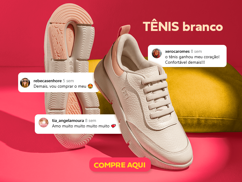 O TOP 2 não poderia ser diferente: ele está em todas, o clássico tênis branco. Mas esse daqui é especial, sabe por quê? Ele foi desenvolvido com a tecnologia Sola+Leve, um solado em EVA que garante maciez, oferecendo no mínimo 30% mais leveza em comparação a outros materiais. E como andam falando por aí… é conforto garantido!