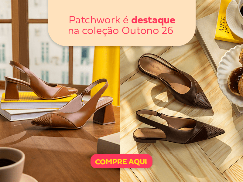 Ou seja, uma tendência que cria – e, de certa forma, reconstrói – peças únicas e cheias de personalidade a partir das sobras de tecidos. E sabe de uma coisa? Agora o patchwork chegou aos seus sapatos. Vem conferir essa novidade da coleção Outono 26!