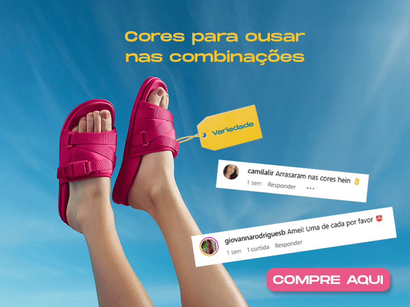 A famosa indecisão de qual cor escolher, quem nunca passou por isso? Na dúvida, escolha todas que combinam com você. Afinal, é a cor que traz possibilidades para o seu look, e a nossa dica é ousar nas combinações sem medo. Com certeza, não vão faltar oportunidades para usar os slides nesse verão. Use a criatividade para montar os looks mais divertidos e coloridos, com a cara da estação.