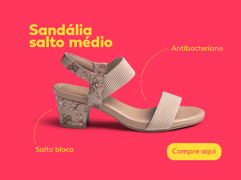 Tem dias da estação que pedem por uma elegância a mais, e é aí que a gente precisa dela: a sandália de salto médio. Ela dá aquele up no look – ainda mais com a estampa floral – sem abrir mão do conforto, já que o salto bloco garante mais estabilidade. Além disso, o modelo conta com tecnologia antibacteriana, que reduz a propagação de fungos e bactérias, algo perfeito para o verão. Tá esperando o quê para garantir a sua?
