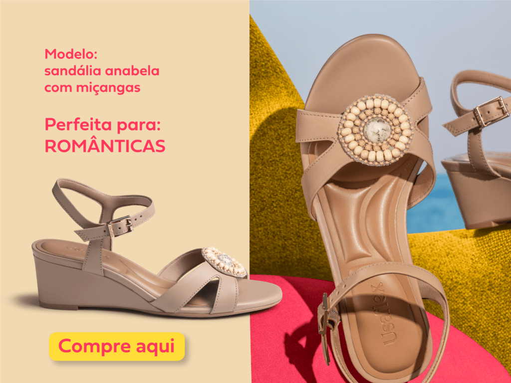 Uma boa romântica sempre presta atenção aos detalhes, busca acolhimento e conexões verdadeiras. E, acredite se quiser, a nossa sandália anabela com miçangas é assim como você. Os enfeites são responsáveis por transmitir a sensação de cuidado, que combinado à tecnologia +Bem-Estar do modelo, oferece conforto para todas as horas. Você vai amar!