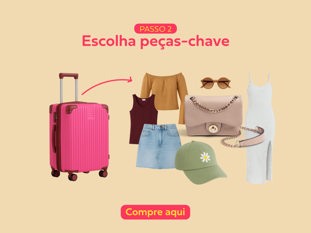 Esse é o passo que garante combinações para qualquer situação: selecione peças-chave. Dê preferência a itens em cores neutras, que rendem vários looks ao longo da viagem, ao clássico jeans que combina com tudo e a acessórios como chapéus, calçados e bolsas, capazes de transformar completamente a proposta do visual.
