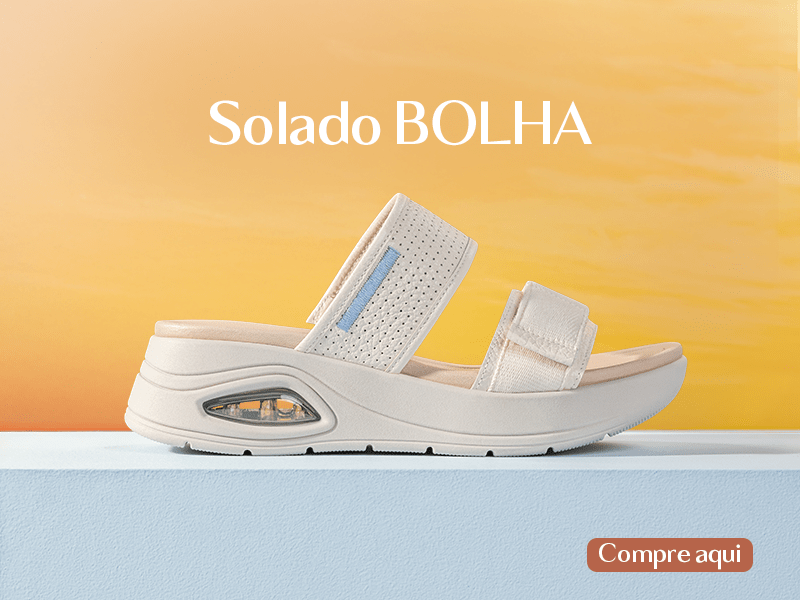 Essa tecnologia veio para transformar seus dias. O amortecimento do Solado Bolha é à base de ar, o que reduz o impacto da pisada e garante conforto prolongado, trazendo leveza para cumprir todos os compromissos sem sentir os pés. Os modelos da coleção de verão trazem conforto e estilo garantidos, com várias opções para combinar e arrasar por onde for.